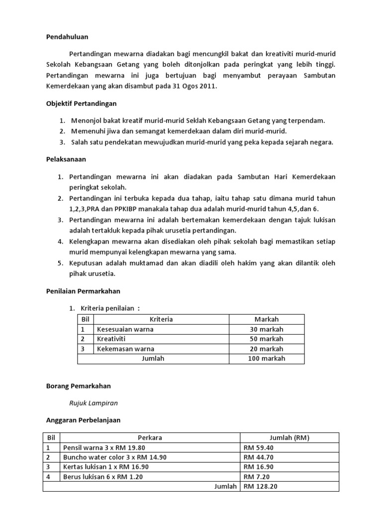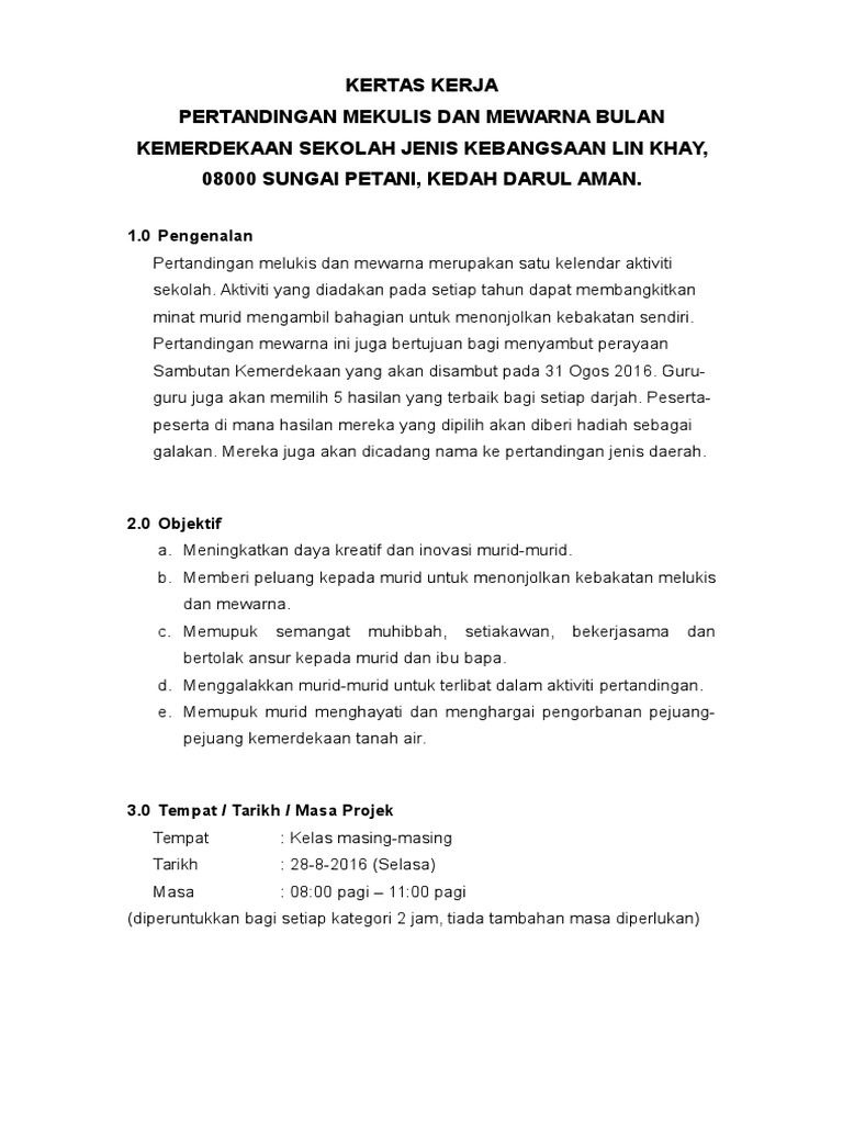 Kertas Kerja Pertandingan Melukis Dan Mewarna Bulan Kemerdekaan Pdf