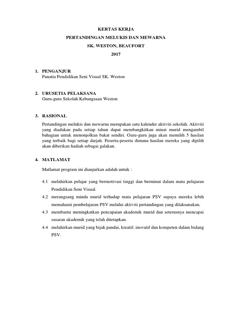Kertas Kerja Pertandingan Melukis Dan Mewarna 2017 Pdf